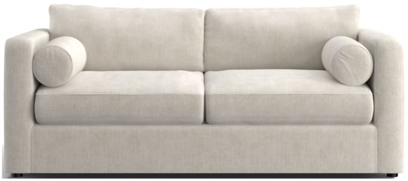 Destined to be everyone's favorite spot to chill, Aris makes modern design soft and cozy. Neat track arms and a broad deck establish the sofa's clean lines, while plush seat and back cushions invite the gang to get comfortable. A couple of bolster pillows aid in getting the snuggle just right.