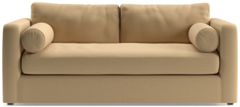 Destined to be everyone's favorite spot to chill, Aris makes modern design soft and cozy. Neat track arms and a broad deck establish the apartment sofa's clean lines, while the plush bench seat and back cushions invite the gang to get comfortable. A couple of bolster pillows aid in getting the snuggle just right. A great choice for small spaces, the Aris apartment sofa is a Crate & Barrel exclusive.