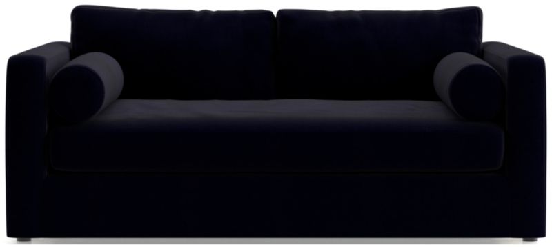 Destined to be everyone's favorite spot to chill, Aris makes modern design soft and cozy. Neat track arms and a broad deck establish the apartment sofa's clean lines, while the plush bench seat and back cushions invite the gang to get comfortable. A couple of bolster pillows aid in getting the snuggle just right. A great choice for small spaces, the Aris apartment sofa is a Crate & Barrel exclusive.