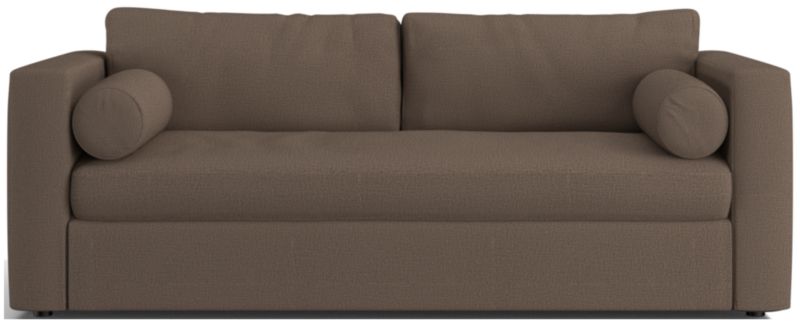 Destined to be everyone's favorite spot to chill, Aris makes modern design soft and cozy. Neat track arms and a broad deck establish the sofa's clean lines, while the plush seat and back cushions invite the gang to get comfortable. A couple of bolster pillows aid in getting the snuggle just right. This comfy queen sleeper sofa features a comfortable mattress and locking tilt-up headrest for reading and media viewing. The Aris Queen Sleeper sofa is a Crate & Barrel exclusive.