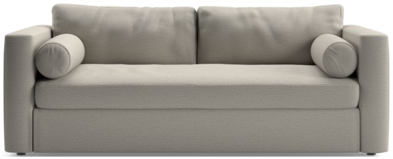 Destined to be everyone's favorite spot to chill, Aris makes modern design soft and cozy. Neat track arms and a broad deck establish the sofa's clean lines, while the plush seat and back cushions invite the gang to get comfortable. A couple of bolster pillows aid in getting the snuggle just right. This comfy queen sleeper sofa features a comfortable mattress and locking tilt-up headrest for reading and media viewing. The Aris Queen Sleeper sofa is a Crate & Barrel exclusive.