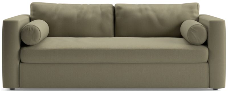Destined to be everyone's favorite spot to chill, Aris makes modern design soft and cozy. Neat track arms and a broad deck establish the sofa's clean lines, while the plush seat and back cushions invite the gang to get comfortable. A couple of bolster pillows aid in getting the snuggle just right. This comfy queen sleeper sofa features a comfortable mattress and locking tilt-up headrest for reading and media viewing. The Aris Queen Sleeper sofa is a Crate & Barrel exclusive.