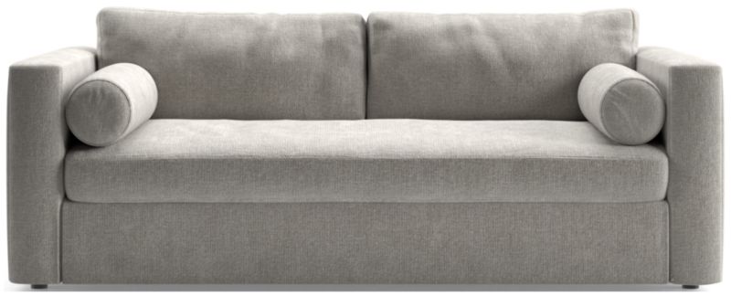 Destined to be everyone's favorite spot to chill, Aris makes modern design soft and cozy. Neat track arms and a broad deck establish the sofa's clean lines, while the plush seat and back cushions invite the gang to get comfortable. A couple of bolster pillows aid in getting the snuggle just right. This comfy queen sleeper sofa features a comfortable mattress and locking tilt-up headrest for reading and media viewing. The Aris Queen Sleeper sofa is a Crate & Barrel exclusive.