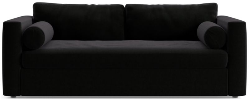 Destined to be everyone's favorite spot to chill, Aris makes modern design soft and cozy. Neat track arms and a broad deck establish the sofa's clean lines, while the plush seat and back cushions invite the gang to get comfortable. A couple of bolster pillows aid in getting the snuggle just right. This comfy queen sleeper sofa features a comfortable mattress and locking tilt-up headrest for reading and media viewing. The Aris Queen Sleeper sofa is a Crate & Barrel exclusive.