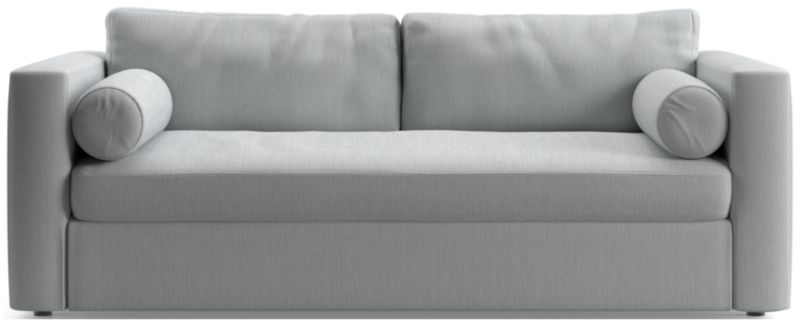 Destined to be everyone's favorite spot to chill, Aris makes modern design soft and cozy. Neat track arms and a broad deck establish the sofa's clean lines, while the plush seat and back cushions invite the gang to get comfortable. A couple of bolster pillows aid in getting the snuggle just right. This comfy queen sleeper sofa features a comfortable mattress and locking tilt-up headrest for reading and media viewing. The Aris Queen Sleeper sofa is a Crate & Barrel exclusive.