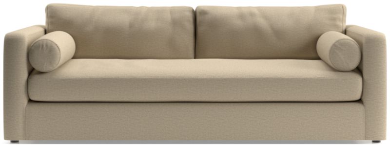 Destined to be everyone's favorite spot to chill, Aris makes modern design soft and cozy. Neat track arms and a broad deck establish the sofa's clean lines, while the plush bench seat and back cushions invite the gang to get comfortable. A couple of bolster pillows aid in getting the snuggle just right. The Aris sofa is a Crate & Barrel exclusive.