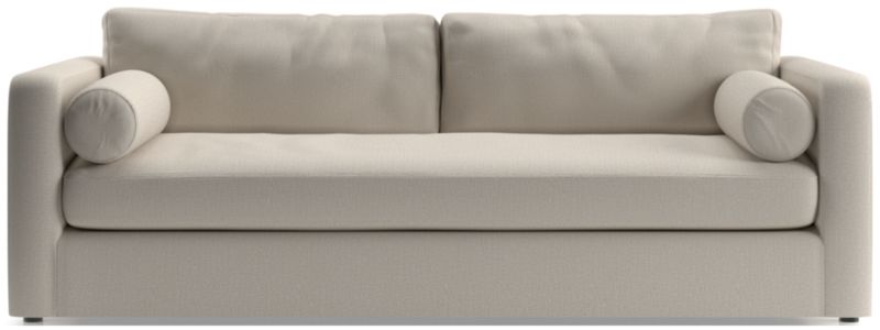 Destined to be everyone's favorite spot to chill, Aris makes modern design soft and cozy. Neat track arms and a broad deck establish the sofa's clean lines, while the plush bench seat and back cushions invite the gang to get comfortable. A couple of bolster pillows aid in getting the snuggle just right. The Aris sofa is a Crate & Barrel exclusive.