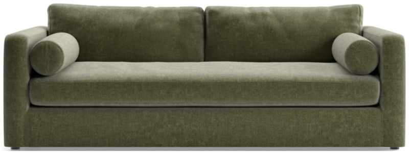 Destined to be everyone's favorite spot to chill, Aris makes modern design soft and cozy. Neat track arms and a broad deck establish the sofa's clean lines, while the plush bench seat and back cushions invite the gang to get comfortable. A couple of bolster pillows aid in getting the snuggle just right. The Aris sofa is a Crate & Barrel exclusive.