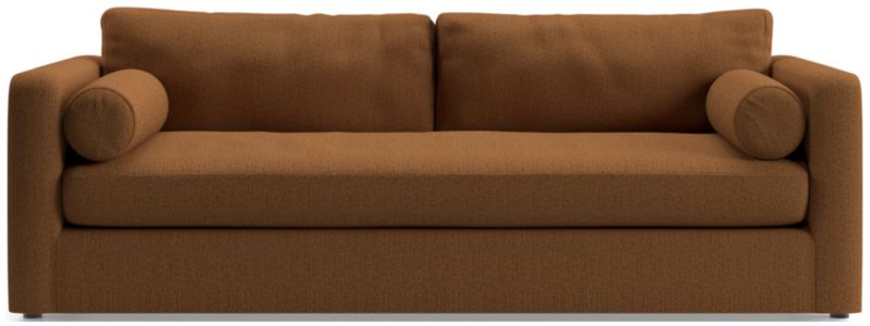 Destined to be everyone's favorite spot to chill, Aris makes modern design soft and cozy. Neat track arms and a broad deck establish the sofa's clean lines, while the plush bench seat and back cushions invite the gang to get comfortable. A couple of bolster pillows aid in getting the snuggle just right. The Aris sofa is a Crate & Barrel exclusive.