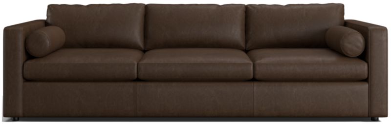 Aris makes modern design soft, cozy and indulgent, upholstered in top-grain leather with rich color and buttery softness. Destined to be everyone's favorite spot to chill, clean-lined Aris features track arms and a broad deck with deep seat and plush back cushions that invite the gang to get comfortable. A couple of bolster pillows aid in getting the snuggle just right.