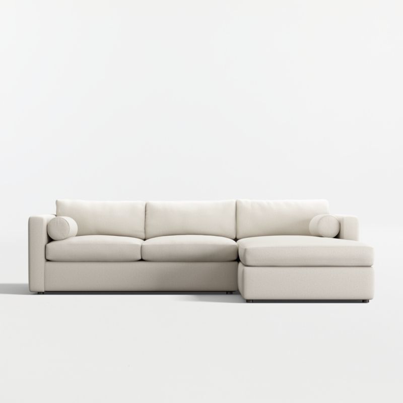Destined to be everyone's favorite spot to chill, our Aris sectional makes modern design soft and cozy. Neat track arms and a broad deck establish the sectional sofa's clean lines, while deep seat and soft back cushions invite the gang to get comfortable. A couple of bolster pillows aid in getting the snuggle just right.