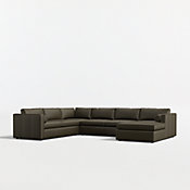 Aris Deep 4-Piece L-Shaped Leather Bench Sectional Sofa with Chaise Lounge