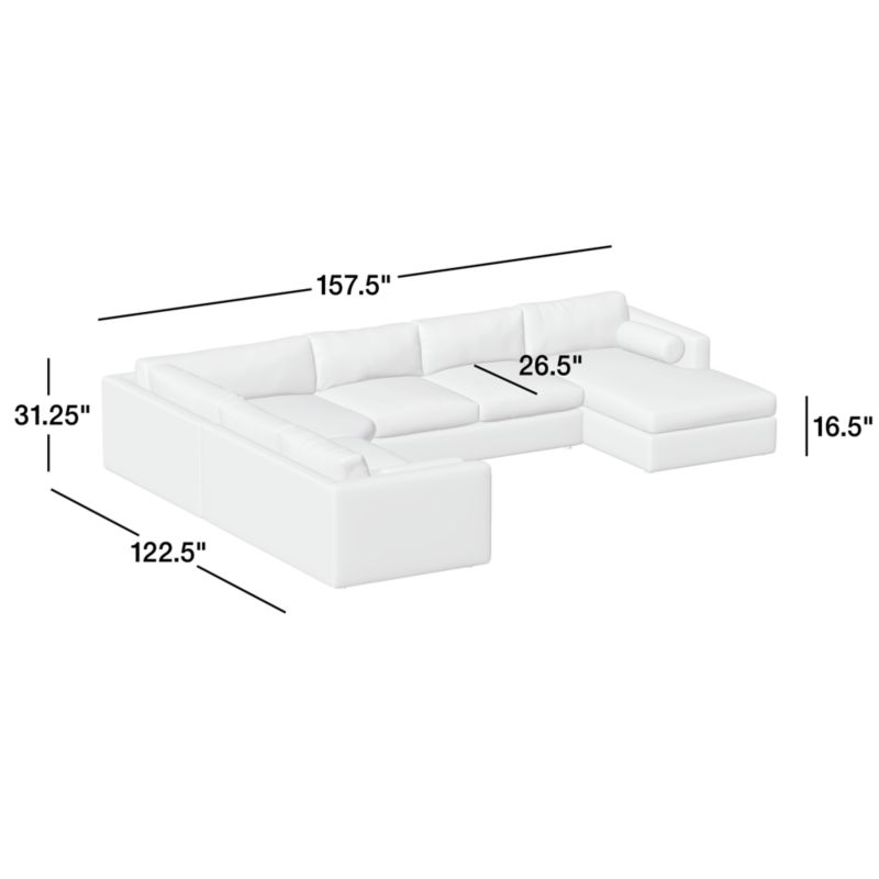 Aris Deep 4-Piece L-Shaped Wedge Sectional Sofa with Chaise Lounge31.25"Hheight122.5"Wwidth157.5"DdepthMeasurements are in inches.