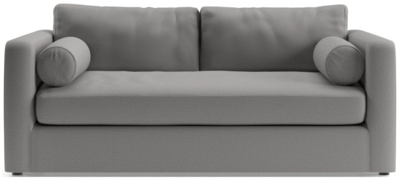 Destined to be everyone's favorite spot to chill, Aris makes modern design soft and cozy. Neat track arms and a broad deck establish the apartment sofa's clean lines, while the deep bench seat and back cushions invite the gang to get comfortable. A couple of bolster pillows aid in getting the snuggle just right. A great choice for smaller spaces, the deep-seated Aris apartment sofa is a Crate & Barrel exclusive.