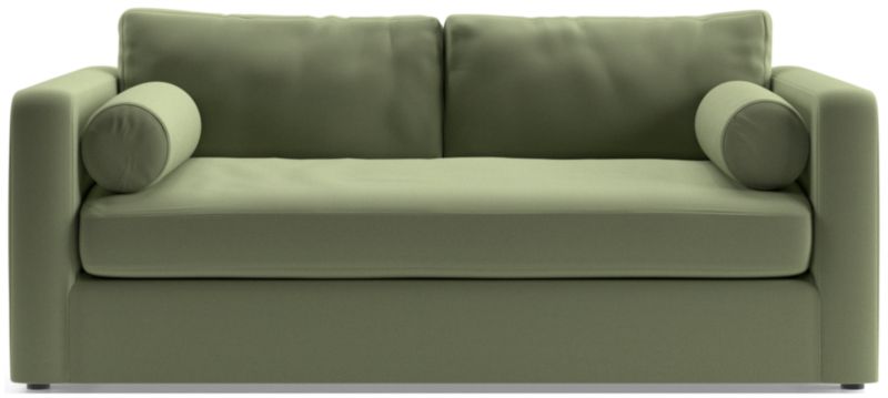 Destined to be everyone's favorite spot to chill, Aris makes modern design soft and cozy. Neat track arms and a broad deck establish the apartment sofa's clean lines, while the deep bench seat and back cushions invite the gang to get comfortable. A couple of bolster pillows aid in getting the snuggle just right. A great choice for smaller spaces, the deep-seated Aris apartment sofa is a Crate & Barrel exclusive.