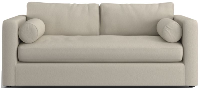 Destined to be everyone's favorite spot to chill, Aris makes modern design soft and cozy. Neat track arms and a broad deck establish the apartment sofa's clean lines, while the deep bench seat and back cushions invite the gang to get comfortable. A couple of bolster pillows aid in getting the snuggle just right. A great choice for smaller spaces, the deep-seated Aris apartment sofa is a Crate & Barrel exclusive.