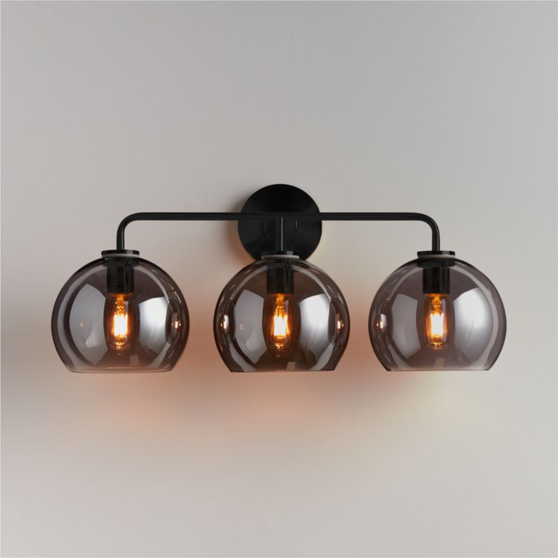 Brighten a hallway, dining room or stairway with our modern-yet-timeless Arren three-light sconce. Bending gracefully from the wall, an iron base finished in black supports a trio of bubble-like silver glass shades. The clean-lined sconce can be positioned with its slim, arched arms facing up for ambient light or down for more focused illumination above your bathroom sink, in a hallway or over a bookcase. Designed by Mark Daniel of Slate Design exclusively for us, this three-light wall sconce is part of our Arren collection of flexible lighting options with a custom feel. Our versatile Arren lighting collection combines single- and multi-bulb pendants, sconces and lamps in a variety of configurations and finishes with elegant glass shades available in three shapes and three finishes.