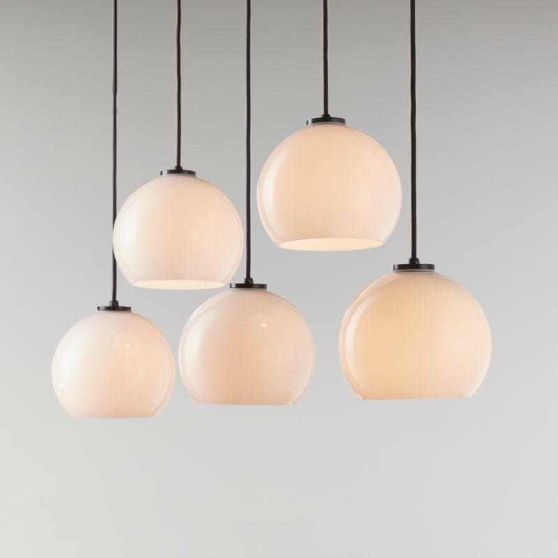 Arren Black 5-Light Linear Pendant with Round Milk Glass Shades 42"