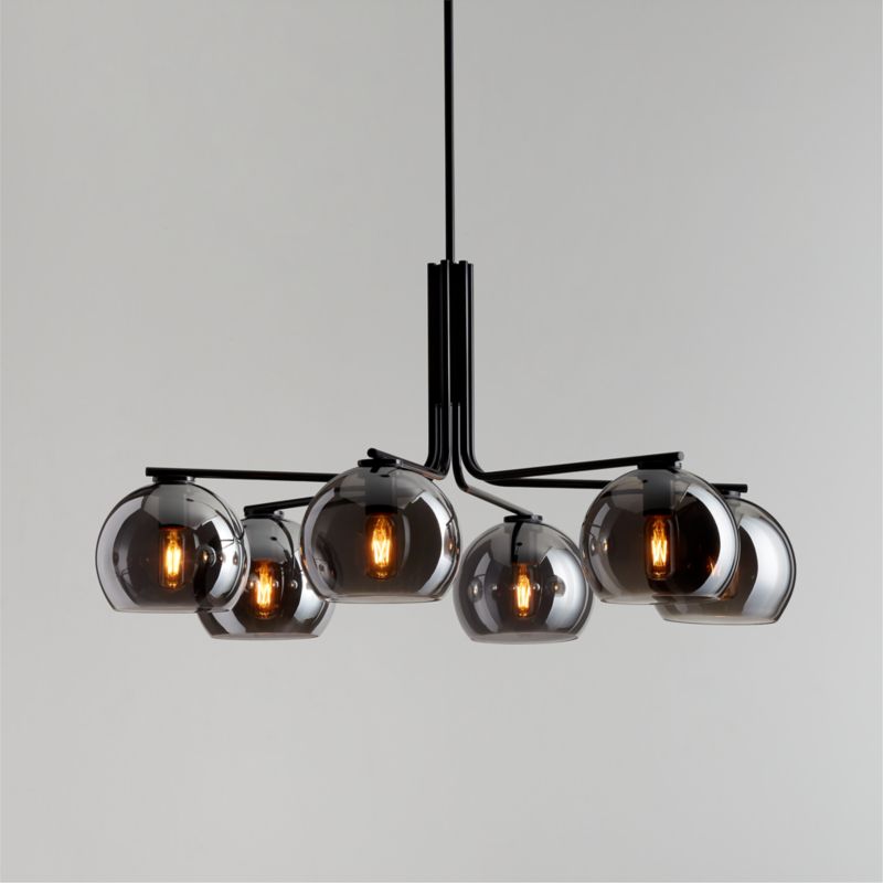Arren suspends a sextet of mercury glass-like shades from an iron fixture finished in black. The round silver glass orbs radiate around the center, supported by slender rods that curve gracefully. Boasting clean lines and classic proportions, the six-light chandelier offers a delightful presence-and plenty of light-in an entryway, above a dining table or at the top and bottom of a stairway. Full of flexible lighting options with a custom feel, our modern-yet-timeless Arren lighting collection combines chandeliers, pendants, sconces and lamps in a variety of configurations and finishes with elegant glass shades available in four shapes and three finishes.