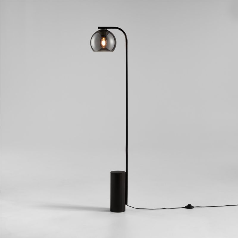 Arren Black Floor Lamp with Silver Round Shade 56"