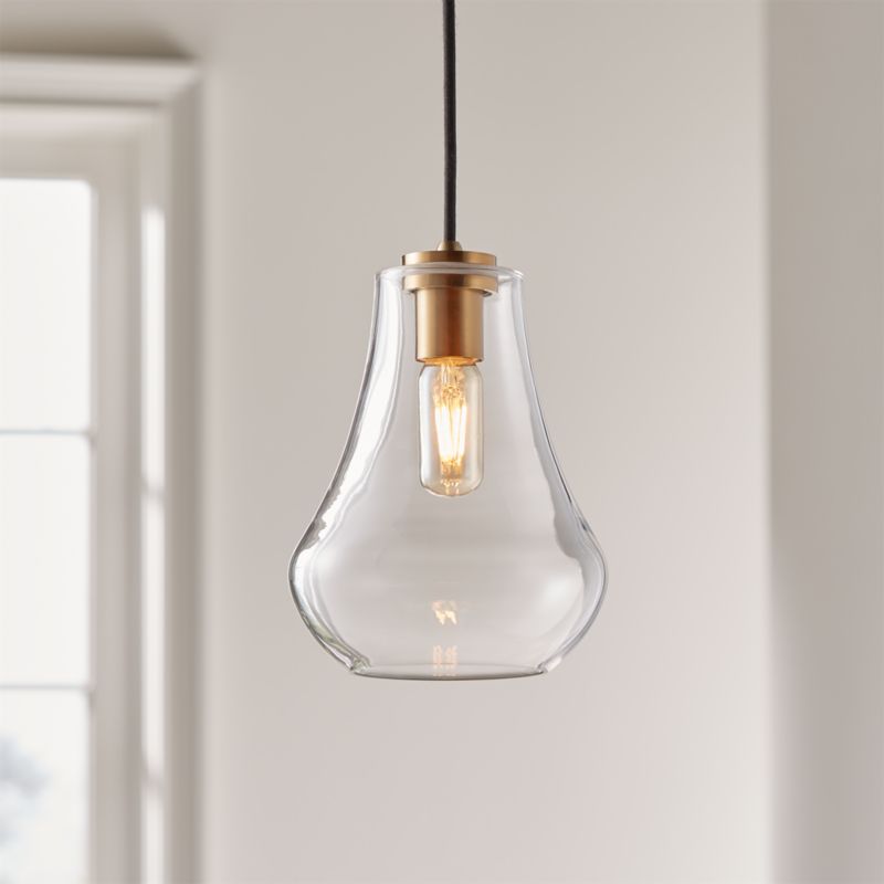 Arren suspends a flared, bell-shaped shade from an iron fixture finished in gleaming brass, the clear glass pendant hanging from a circular ceiling plate and adjustable black fabric cord. Boasting clean lines and graceful proportions, the Arren Brass Single Pendant with Clear Teardrop Shade illuminates with style.
