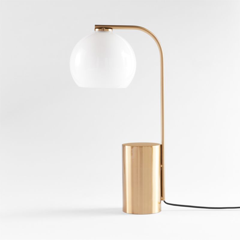 A column of brass provides a gleaming and grounding base for our Arren table lamp. Bending gracefully at curved corners, brass-finished rod suspends a rounded, milky-white glass shade. Boasting clean lines and balanced proportions, the lamp creates striking illumination next to a sofa, armchair or bed. This table lamp is designed by Mark Daniel of Slate Design exclusively for us as part of our Arren collection of flexible lighting options with a custom feel.