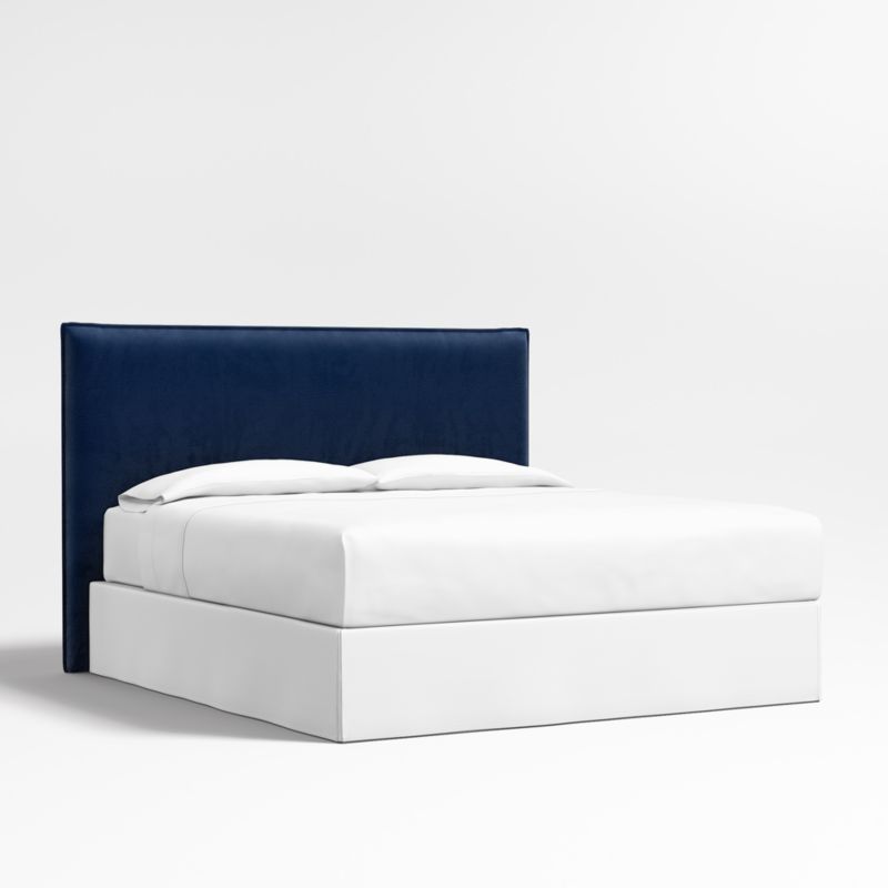 Our custom bed collection lets you mix and match our top-selling headboards and bases for a look that's truly yours. Upholstered in navy blue faux mohair, the coastal-cool Arvada headboard offers pillow-like comfort and the casual look of a relaxed flange border. The upholstered headboard is designed to fit perfectly with any of our bed bases.