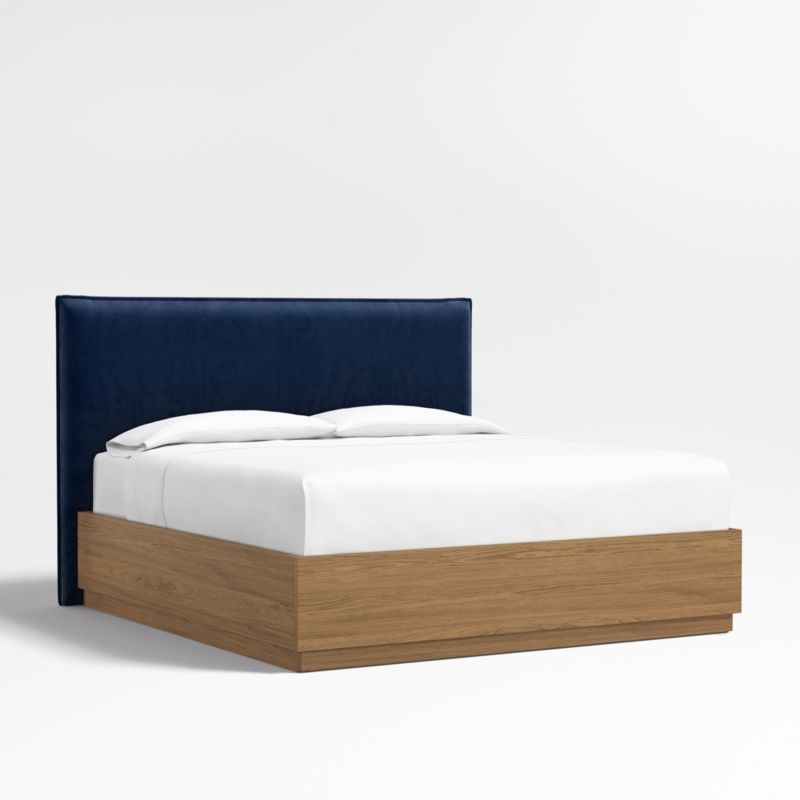 • View Arvada 54" Navy Upholstered King Headboard with Batten Brown Oak Storage Bed Base - image 4 of 5