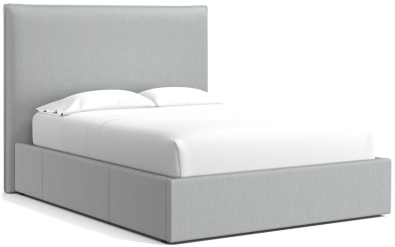 Our custom bed collection lets you mix and match our top-selling headboards and bases for a look that's truly yours. Our coastal-cool Arvada headboard offers pillow-like comfort and the casual look of a relaxed flange border. The matching upholstered base integrates three roomy drawers—one on each side and one at the foot of the bed—for storing off-season clothes and extra blankets. As a plus, the side drawers open with just enough clearance to avoid hitting nightstands and other bedroom furniture.
