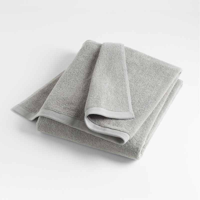 Pale grey organic cotton yarn interwoven with specially treated threads creates a super-soft bath sheet with antimicrobial powers. Lasting for the life of the towel, the SILVERbac treatment inhibits the growth of most bacterial pathogens and minimizes odors. Long-staple Turkish cotton provides durability, strength and softness. A Crate & Barrel exclusive, the antimicrobial organic cotton bath sheet coordinates with our other ash grey towels.