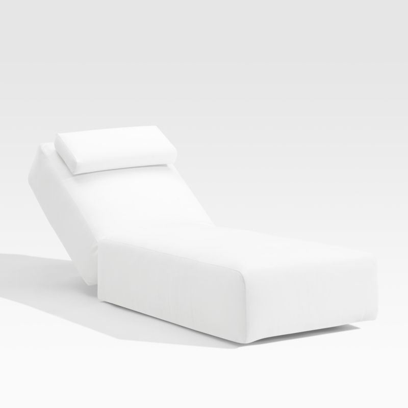 Designed to add plush comfort to the Ashore chaise lounge, the boxy seat and angled back cushions feature comfy foam inserts. The white covers are made of durable polyester that's water-repellent and UV-protected. Zippered covers are easily removed for machine washing. The Ashore outdoor chaise lounge cushions are exclusive to Crate & Barrel.