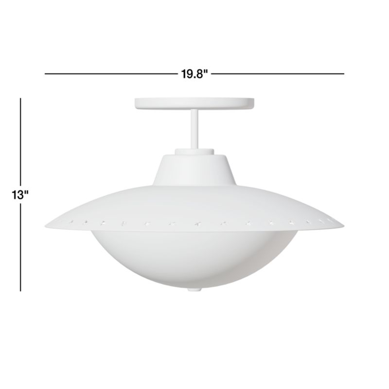 Bring out-of-this-world style into your little stargazer's universe with our Astro Star semi-flush mount ceiling light. This Space Age–inspired fixture features a sleek silhouette with star-shaped cutouts on a bold blue canopy, plus a floating glass saucer that glows softly overhead. It's the perfect choice for kids who dream big—day or night.