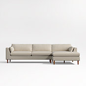 Just updated! Our better-than-ever Avondale sectional brings clean, sophisticated style and easy comfort to your living space. The combination of a left-arm chaise and right-arm chair sits medium to medium-firm with seat cushions boosted with plush feather-down to reduce pressure points and maximize comfort. Back pillows, also enhanced with feather-down, ride a little higher against a lowered back to support with sink-in softness. Arm pillows scale up with neat knife-edge tailoring to casually tuck between the frame and seats. We especially love the two-piece sectional upholstered in texture-rich Pebble, a slubby weave with subtle color variations.