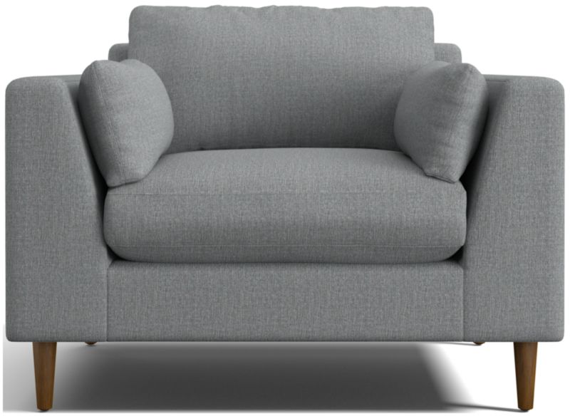 Just updated! Our better-than-ever Avondale brings clean, sophisticated style and easy comfort to your living space. Sitting medium to medium-firm, the seat cushion gets a boost with plush feather-down to reduce pressure points and maximize comfort. The back pillow, also enhanced with feather-down, rides a little higher against a lowered back to support with sink-in softness. Along with Avondale's signature brown-finished round legs and smart topstitching, arm pillows now scale up with neat knife-edge tailoring to casually tuck between frame and seat. We especially love the chair upholstered in texture-rich Pebble, a stubby weave with subtle color variations.