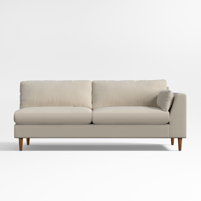 Just updated! Our better-than-ever Avondale sectional brings clean, sophisticated style and easy comfort to your living space. The right-arm sofa combines with other pieces to make a sectional that's just right for your space. Sitting medium to medium-firm, the seat cushions get a boost with plush feather-down to reduce pressure points and maximize comfort. The back pillows, also enhanced with feather-down, ride a little higher against a lowered back to support with sink-in softness. Along with Avondale's signature brown-finished round legs and smart topstitching, the arm pillow now scales up with neat knife-edge tailoring to casually tuck between frame and seat. We especially love the right-arm sofa upholstered in texture-rich Pebble, a stubby weave with subtle color variations.