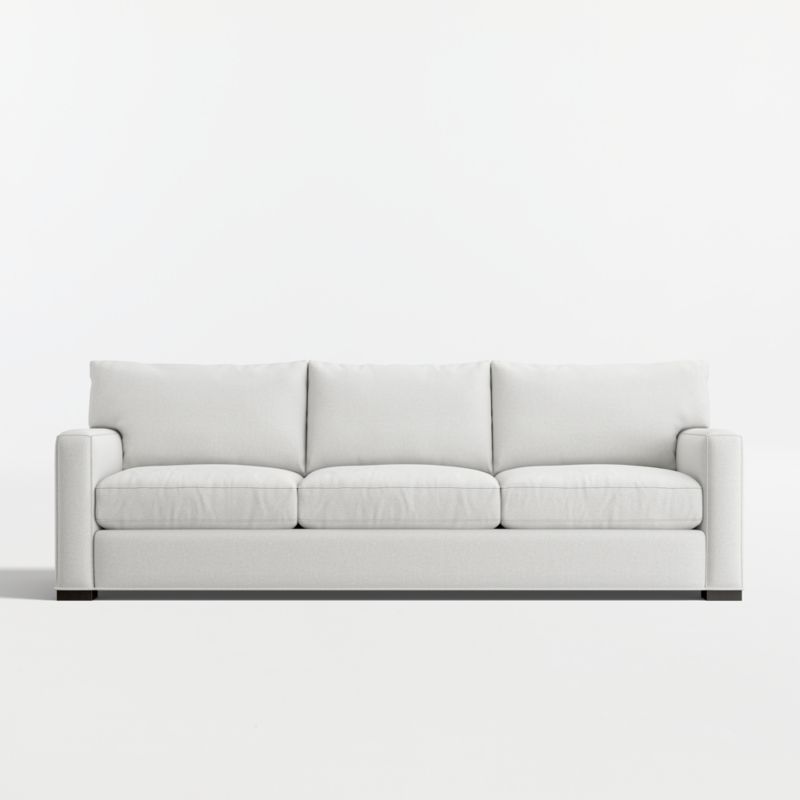 The quality and comfort of our Axis collection is legendary. Casual and inviting, the sofa offers exceptional, long-lasting durability. An angled back and deep seat cushions filled with a plush feather-down blend encourage lounging, while track arms give the sofa the clean look and modern style that make Axis a Crate & Barrel icon.