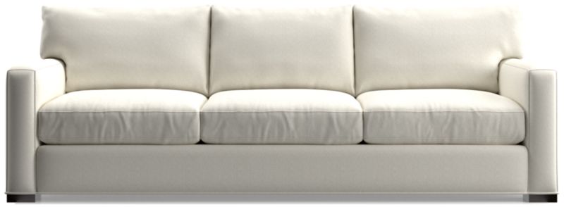 The quality and comfort of our Axis collection is legendary. Casual and inviting, the sofa offers exceptional, long-lasting durability. An angled back and deep seat cushions filled with a plush feather-down blend encourage lounging, while track arms give the sofa the clean look and modern style that make Axis a Crate & Barrel icon.