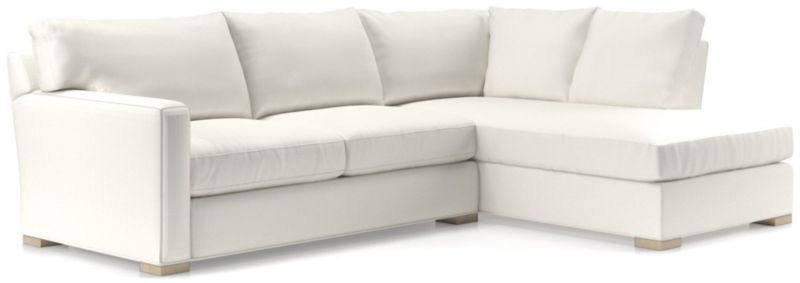 The quality and comfort of our Axis collection is legendary. Casual and inviting, the sectional offers exceptional, long-lasting durability. Angled backs and deep seat cushions filled with a plush feather-down blend encourage lounging, while track arms give the sectional the clean look and modern style that make Axis a Crate & Barrel icon.