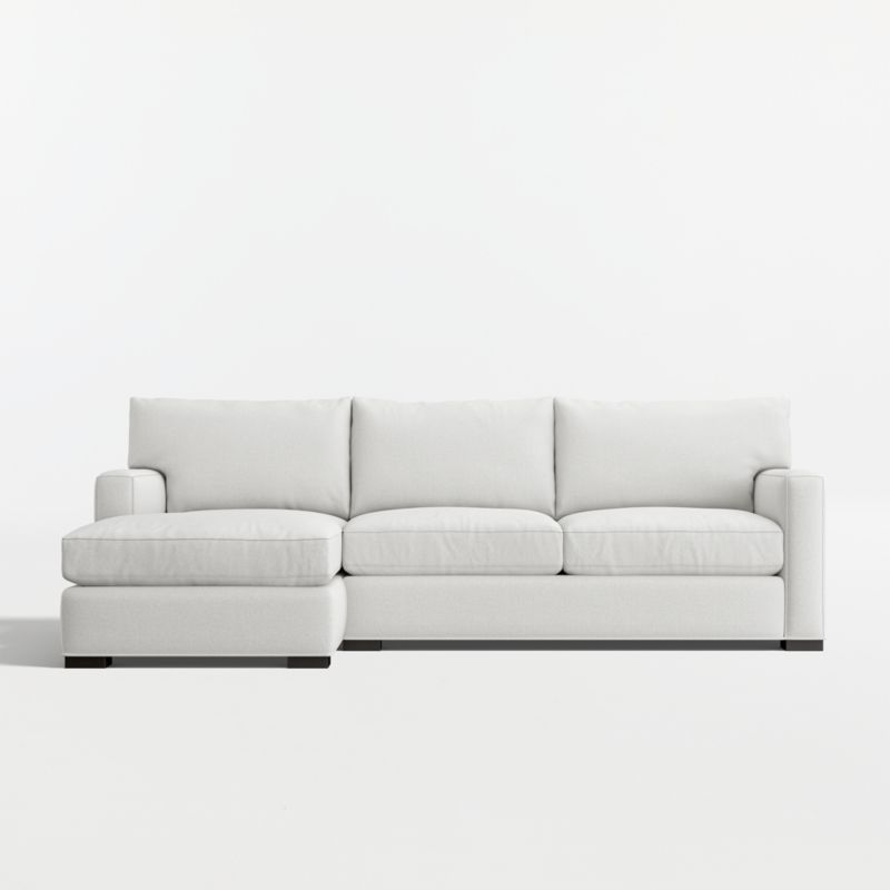 The quality and comfort of our Axis collection is legendary. Casual and inviting, the sectional offers exceptional, long-lasting durability. Angled backs and deep seat cushions filled with a plush feather-down blend encourage lounging, while track arms give the sectional the clean look and modern style that make Axis a Crate & Barrel icon.