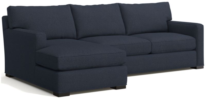 The quality and comfort of our Axis collection is legendary. Casual and inviting, the sectional offers exceptional, long-lasting durability. Angled backs and deep seat cushions filled with a plush feather-down blend encourage lounging, while track arms give the sectional the clean look and modern style that make Axis a Crate & Barrel icon.