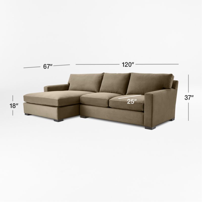 The quality and comfort of our Axis collection is legendary. Casual and inviting, the sectional offers exceptional, long-lasting durability. Angled backs and deep seat cushions filled with a plush feather-down blend encourage lounging, while track arms give the sectional the clean look and modern style that make Axis a Crate & Barrel icon.