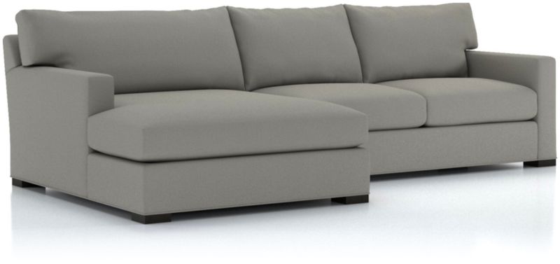 The quality and comfort of our Axis collection is legendary. Casual and inviting, the sectional offers exceptional, long-lasting durability. Angled backs and deep seat cushions filled with a plush feather-down blend encourage lounging, while track arms give the sectional the clean look and modern style that make Axis a Crate & Barrel icon.
