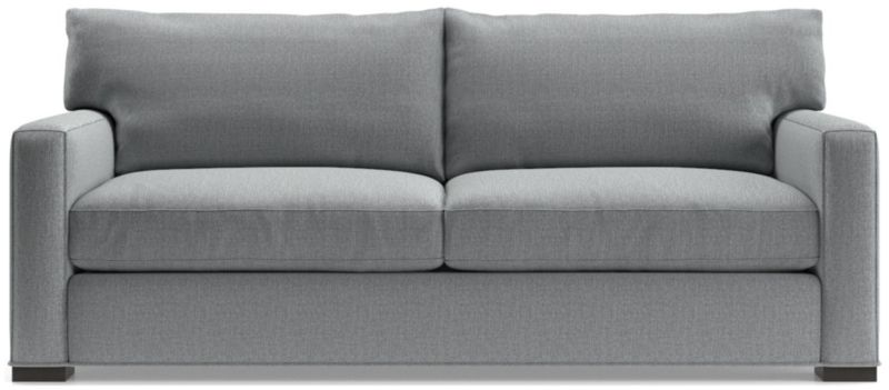 The quality and comfort of our Axis collection is legendary. Casual and inviting, the sleeper sofa offers exceptional, long-lasting durability as a sofa or as a bed. The pull-out inflatable queen mattress with twice the thickness of ordinary sleeper mattresses for maximum comfort. A self-sealing valve allows for easy inflating of the air cushion in just 25 seconds (air pump included). Chambered air channels go from firm to soft with the touch of a button for individualized comfort and ergonomic support. Used as a sofa, the angled back and deep seat cushions filled with a plush feather-down blend encourage lounging, while track arms give it the clean look and modern style that make Axis a Crate & Barrel icon.