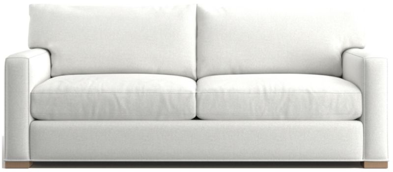 The quality and comfort of our Axis collection is legendary. Casual and inviting, the sleeper sofa offers exceptional, long-lasting durability as a sofa or as a bed. The pull-out inflatable queen mattress with twice the thickness of ordinary sleeper mattresses for maximum comfort. A self-sealing valve allows for easy inflating of the air cushion in just 25 seconds (air pump included). Chambered air channels go from firm to soft with the touch of a button for individualized comfort and ergonomic support. Used as a sofa, the angled back and deep seat cushions filled with a plush feather-down blend encourage lounging, while track arms give it the clean look and modern style that make Axis a Crate & Barrel icon.