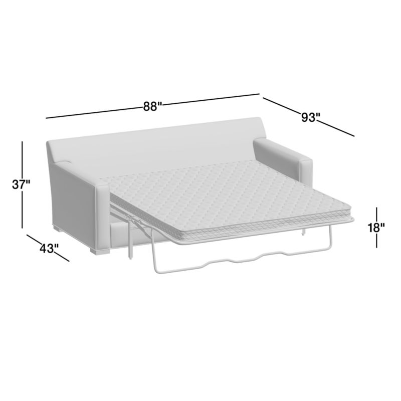 The quality and comfort of our Axis collection is legendary. Casual and inviting, the sleeper sofa offers exceptional, long-lasting durability as a sofa or as a bed. The pull-out queen mattress is ultra comfortable and has a locking, tilt-up headrest for late-night reading or TV viewing. The sofa's angled back and deep seat cushions filled with a plush feather-down blend encourage lounging, while track arms give the sofa the clean look and modern style that make Axis a Crate & Barrel icon.