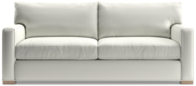 The quality and comfort of our Axis collection is legendary. Casual and inviting, the sleeper sofa offers exceptional, long-lasting durability as a sofa or as a bed. The pull-out queen mattress is ultra comfortable and has a locking, tilt-up headrest for late-night reading or TV viewing. The sofa's angled back and deep seat cushions filled with a plush feather-down blend encourage lounging, while track arms give the sofa the clean look and modern style that make Axis a Crate & Barrel icon.