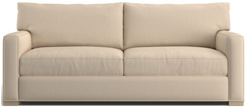 The quality and comfort of our Axis collection is legendary. Casual and inviting, the sleeper sofa offers exceptional, long-lasting durability as a sofa or as a bed. The pull-out queen mattress is ultra comfortable and has a locking, tilt-up headrest for late-night reading or TV viewing. The sofa's angled back and deep seat cushions filled with a plush feather-down blend encourage lounging, while track arms give the sofa the clean look and modern style that make Axis a Crate & Barrel icon.