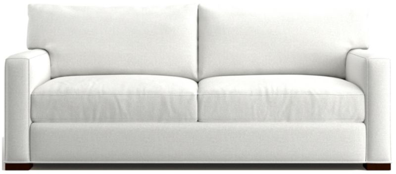 The quality and comfort of our Axis collection is legendary. Casual and inviting, the sleeper sofa offers exceptional, long-lasting durability as a sofa or as a bed. The pull-out queen mattress is ultra comfortable and has a locking, tilt-up headrest for late-night reading or TV viewing. The sofa's angled back and deep seat cushions filled with a plush feather-down blend encourage lounging, while track arms give the sofa the clean look and modern style that make Axis a Crate & Barrel icon.