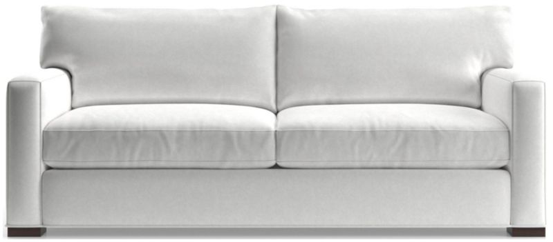The quality and comfort of our Axis collection is legendary. Casual and inviting, the sleeper sofa offers exceptional, long-lasting durability as a sofa or as a bed. The pull-out queen mattress is ultra comfortable and has a locking, tilt-up headrest for late-night reading or TV viewing. The sofa's angled back and deep seat cushions filled with a plush feather-down blend encourage lounging, while track arms give the sofa the clean look and modern style that make Axis a Crate & Barrel icon.