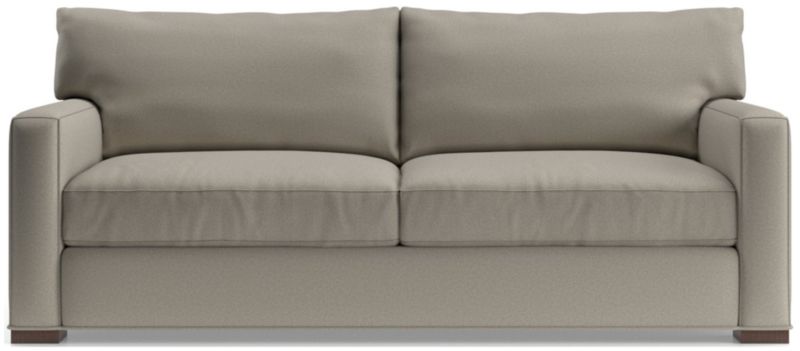 The quality and comfort of our Axis collection is legendary. Casual and inviting, the sleeper sofa offers exceptional, long-lasting durability as a sofa or as a bed. The pull-out queen mattress is ultra comfortable and has a locking, tilt-up headrest for late-night reading or TV viewing. The sofa's angled back and deep seat cushions filled with a plush feather-down blend encourage lounging, while track arms give the sofa the clean look and modern style that make Axis a Crate & Barrel icon.